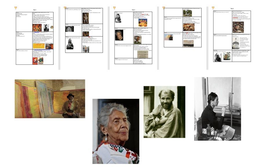 Planning documents: If you have attended any training with me then you will already know that when it comes to planning docs, I suggest pasting in thumbnails of the (main) artwork that you will be looking at, and including thumbnail images of the artists you will cover. Selecting the art and artists you will look at with students is one of the biggest decisions an art leader makes, and has an impact on how the subject looks and feels in your school. So it makes sense to showcase this aspect in the planning documents.