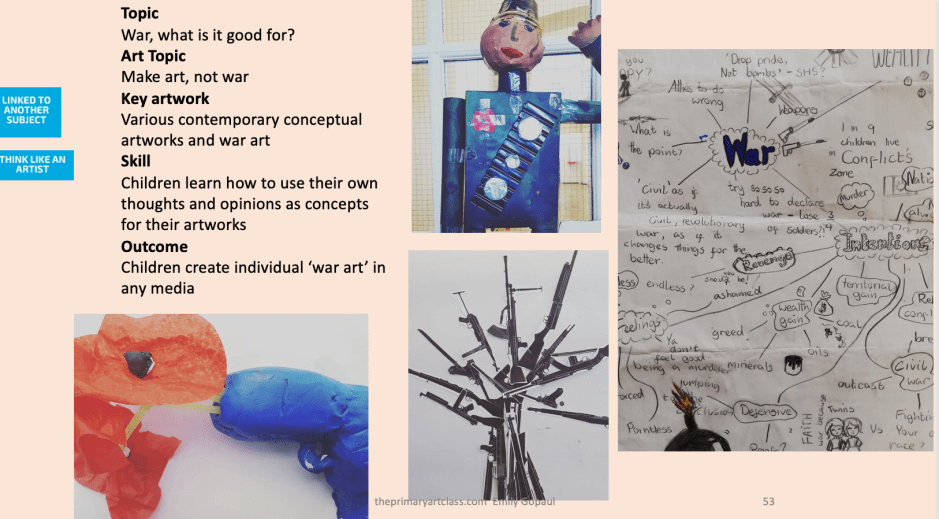 Follow that train of thought with me because, The National Curriculum for primary art is brief and non-specific, leaving a lot open to the interpretation of each school. So, in most cases, it is the job of the art leader to design and plan the entire curriculum for art and design themselves. We are talking about a minimum of 36 schemes of work for your average primary school. The daunting task of selecting the art and artists to look at and learn about, which skills and techniques to be taught and what creative outcomes are to be made frequently falls on the head of one, rather overworked already, art lead. Not to mention the expectations around school display, festive crafts and school events – and assessment.